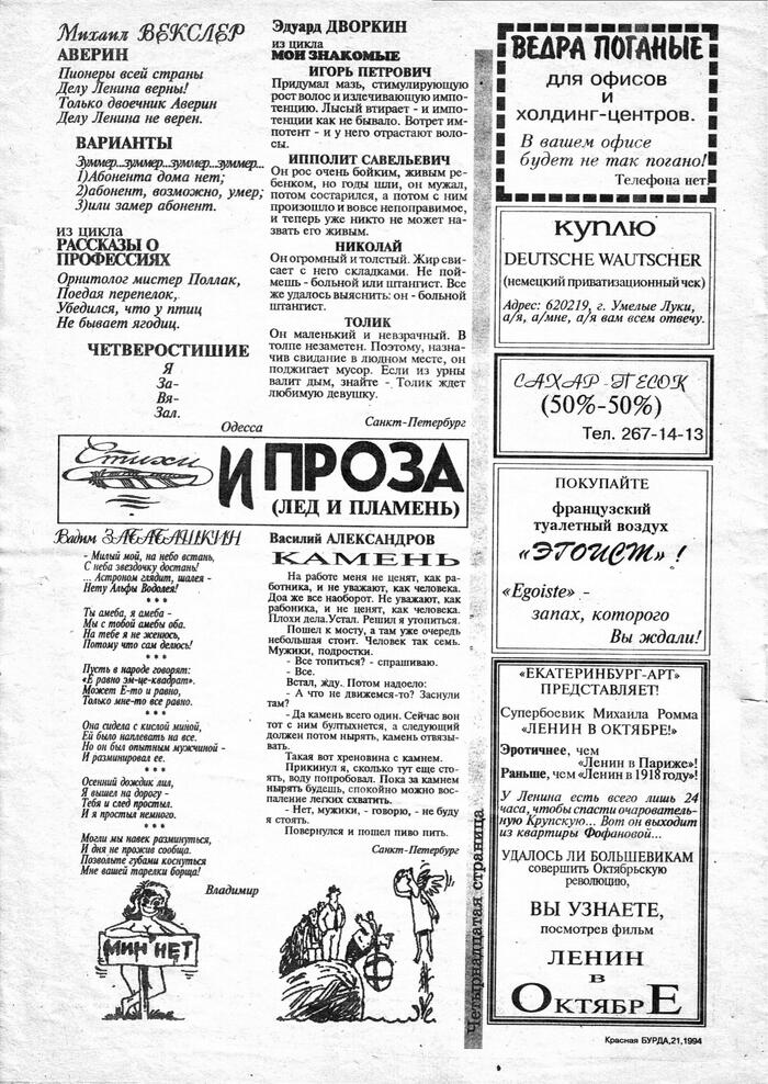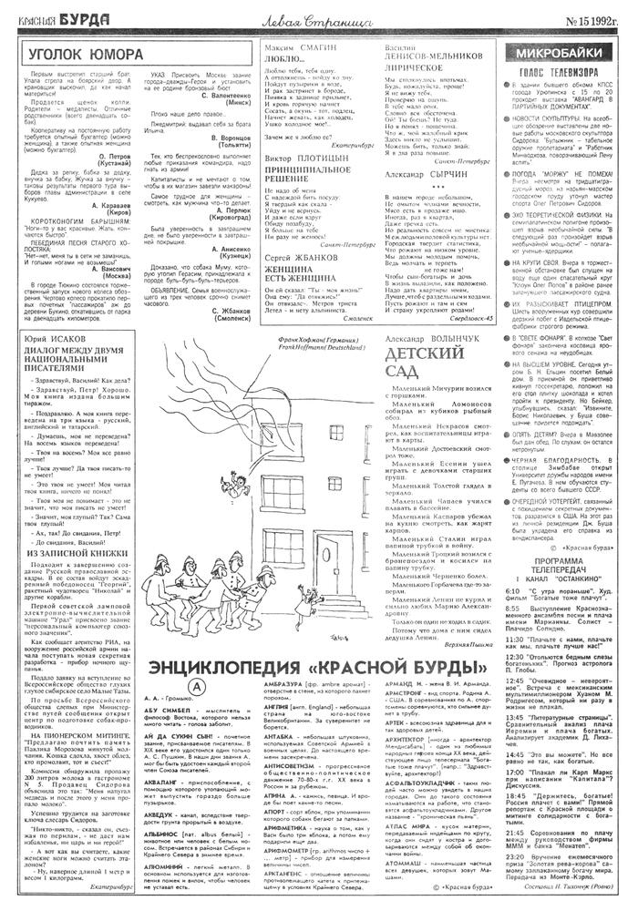 7 CEKCTAHT Газеты и журналы Серия Красная Бурда Красная Бурда - 1993 - 03 (18) 2 года назад Показать полностью 5 Журнал Красная бурда Юмор Ирония Длиннопост Скан 1993 Ещё 0