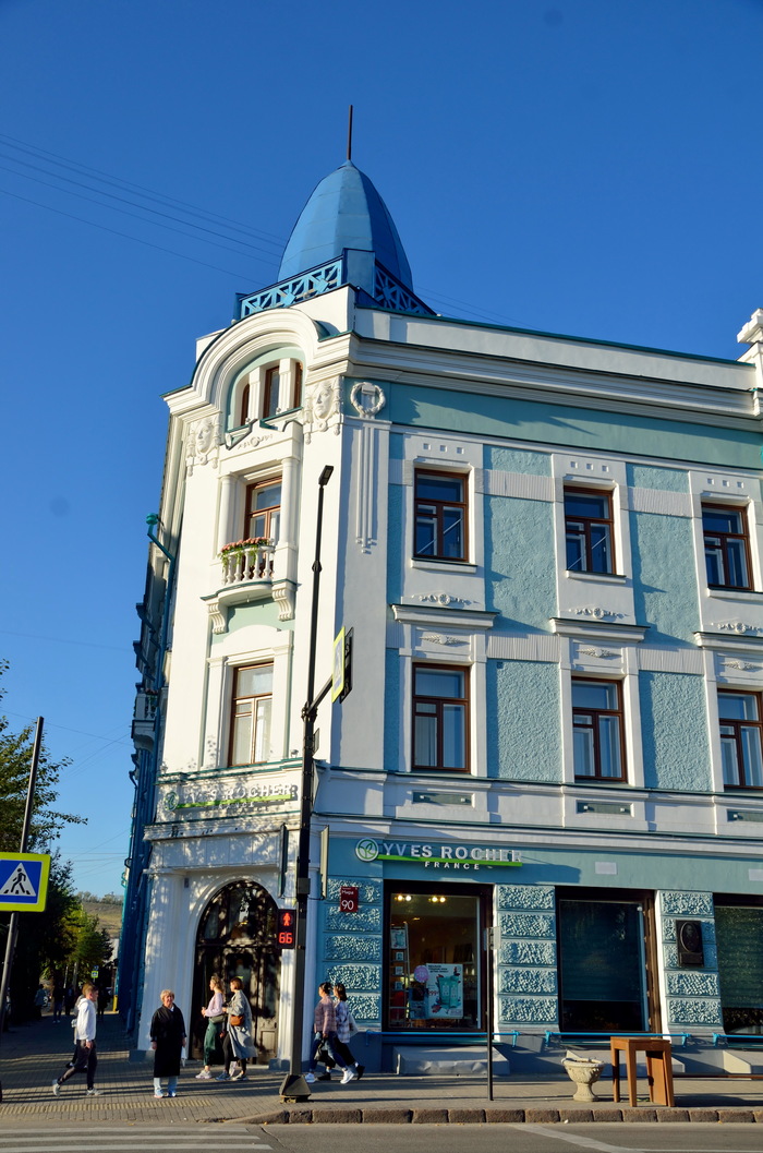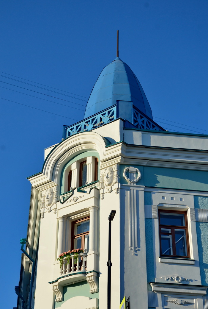 Нашла старую фотографию этого здания в инете - там на куполе есть фигурка! Почему-то в нынешней версии её не сделали. Хочется верить, что качество реставрации позволит фасаду быть красивым долгое время!