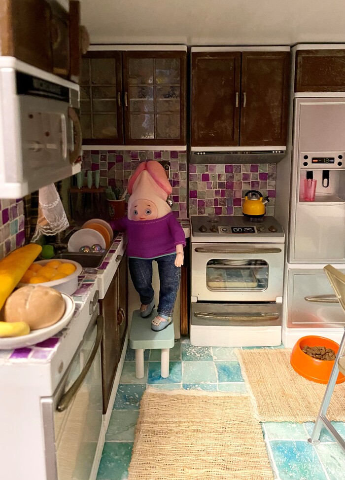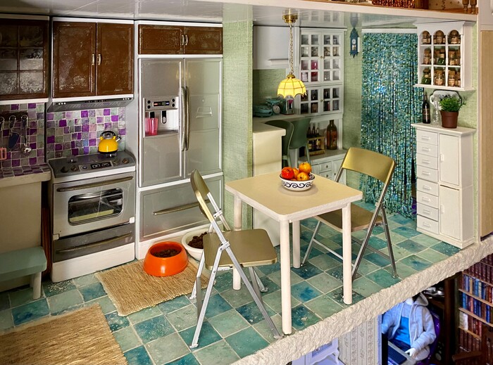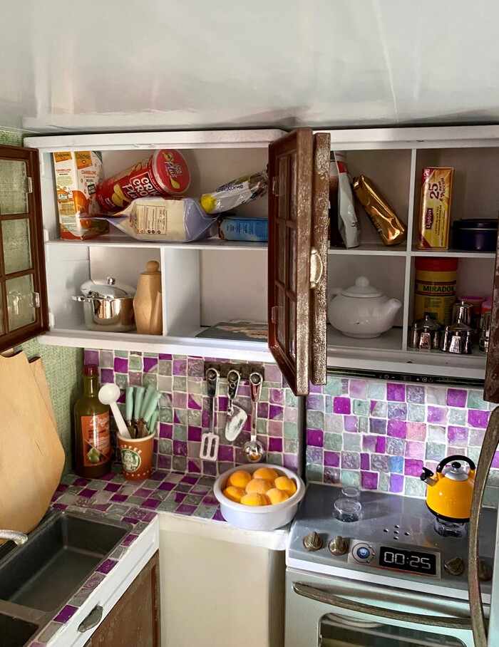 Вообще всякая фигня для домиков 1:12 очень полезная, из мебелей можно из нескольких маленьких сделать одно большое - например сервант на кухне с окошками- сверху один шкаф, снизу комод я его покрасила и сделала из дерева соединение между ними, и вуаля. Стеллаж и коричневый шкаф в спальне та же фигня. Бело-голубой шкаф в спальне верх комплектный, низ просто полочки сделала и прилепила. Напольные часы у пианино тоже сверху мелкие, снизу три мелкие тумбочки одна на другой.