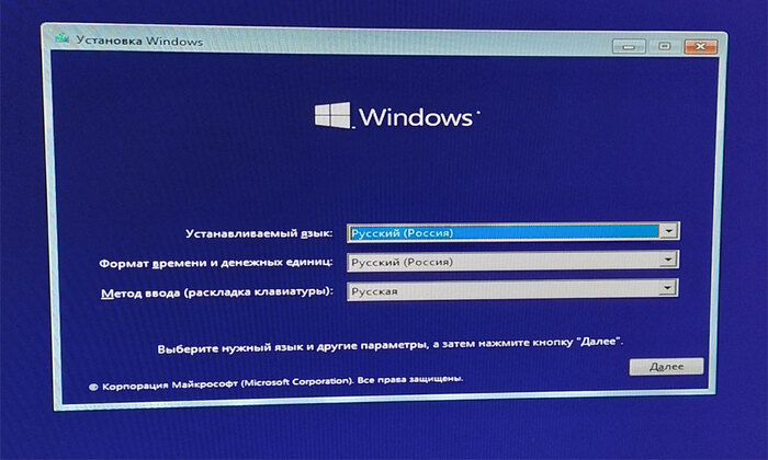 Так или иначе, в любом случае начинается процесс установки Windows с флешки.