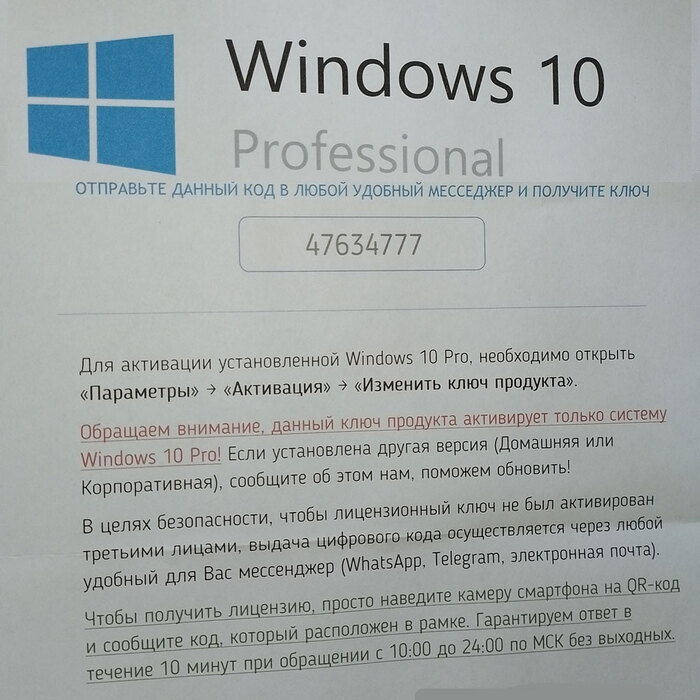 В данном случае я оказался прав в своем оптимизме. Еще через 3-4 минуты 25-значный код активации Windows пришел мне на почту.