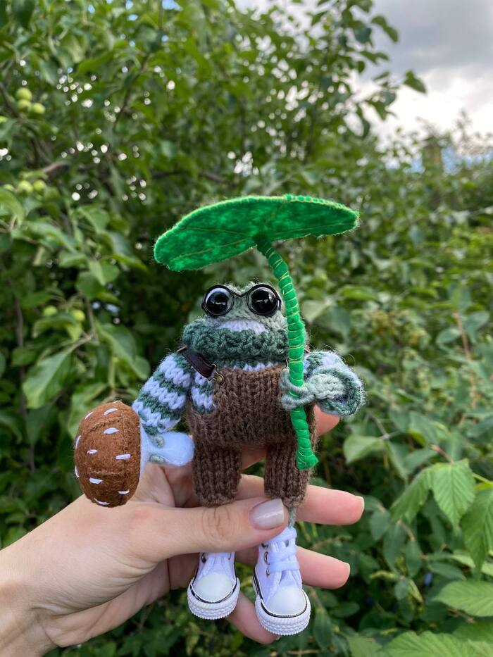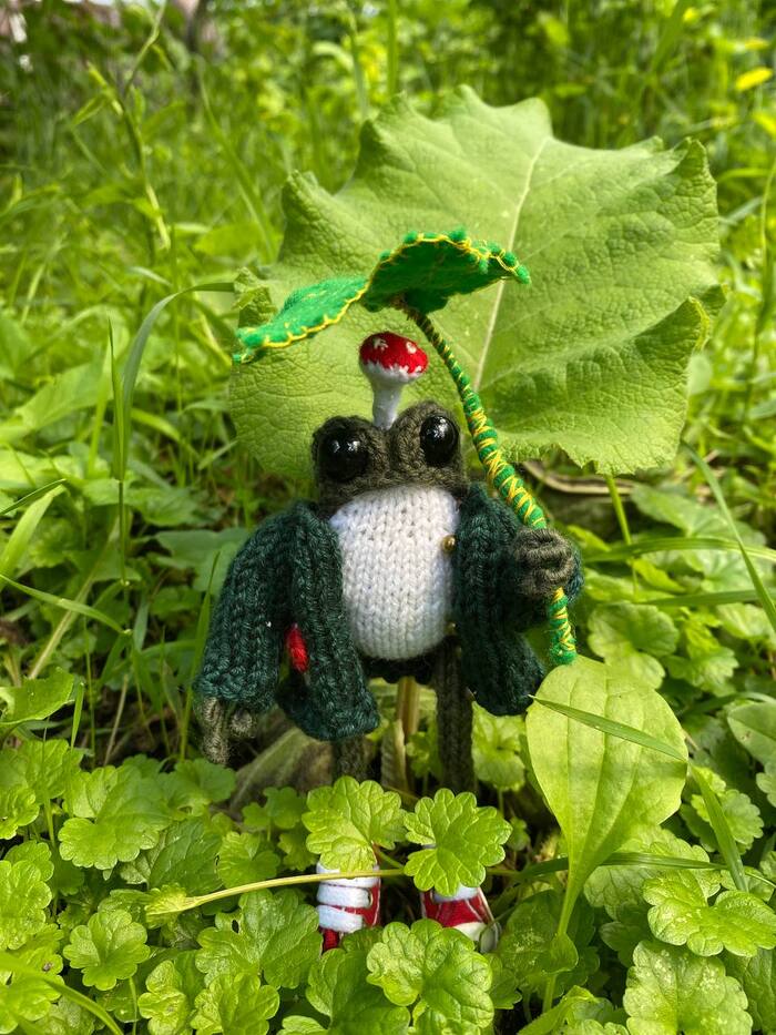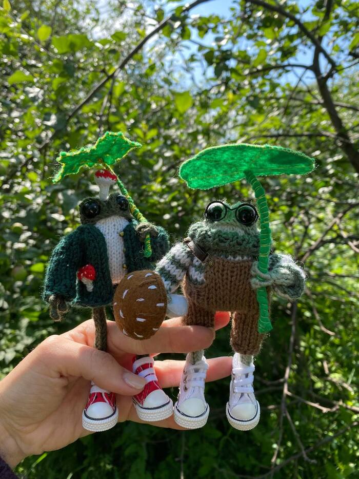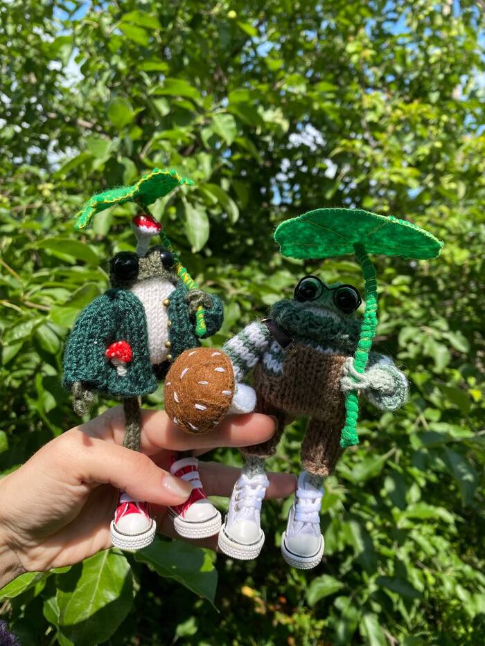 Я уже более года вяжу лягух, и вот только пару месяцев назад я нашла все материалы, подходящие мне для работы. Я перепробовала кучу пряжи, разную проволоку и глаза.