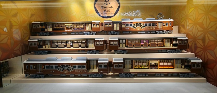 Из нее мы переходим в столовую, стилизованную под 50-е года в США. Красные кожаные диваны, пол с черно-белой шахматной плиткой, потолочный вентилятор, официантка с молочным коктейлем, нраица!