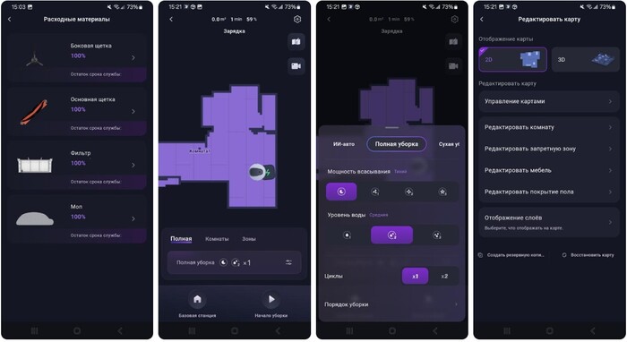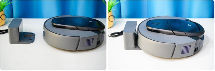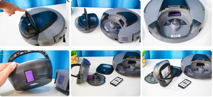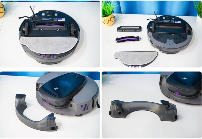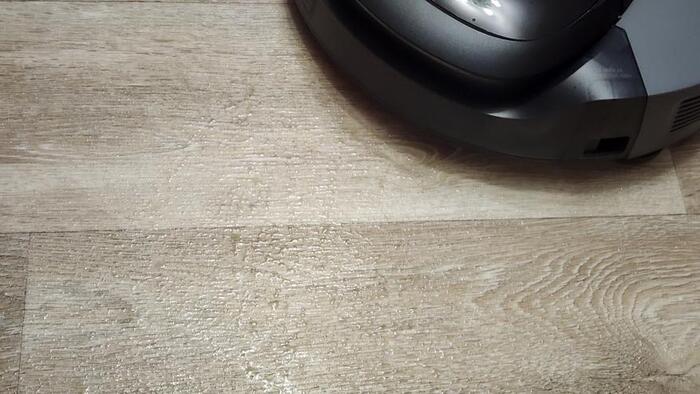 Заправка происходит достаточно тривиально — из бутылочки-дозатора переливаем жидкость в небольшую ёмкость на корпусе робота. Отверстие ёмкости закрывается силиконовой крышкой, а помещается до 50 миллилитров жидкости. Не стоит использовать агрессивные жидкости — лучше взять обычное чистящее средство, которое используется для стекол/зеркал, или же обычную воду.