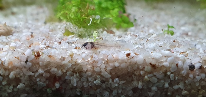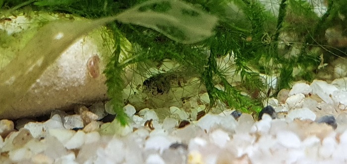 Общая численньсть мальков около 15 штук, но точное количество не определить, так как они прячутся во мхе и других укромных местах. Несколько погибло - видел трупики, штук 5 наверное за все время. Почему? Не знаю. Возможно параметры воды скакнули, так как улитки катушки все загадили и им очень правится еда для мальков (да и дохлые мальки тоже), а может просто естественный отбор слабых и дефектных особей.
