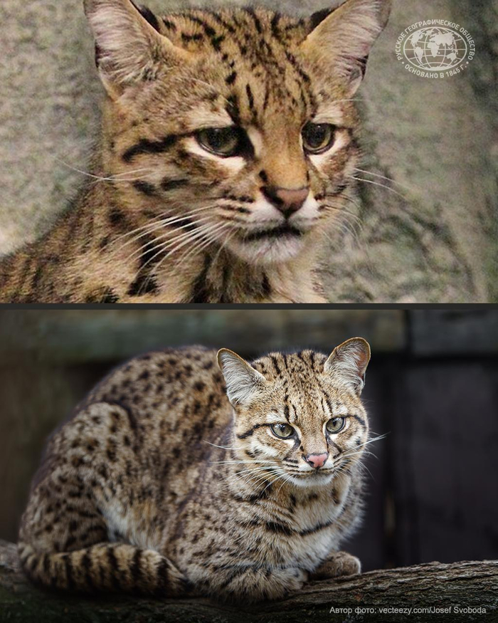 Одна из самых маленьких диких кошек в мире — длина тела примерно 60 см (+ 30 см хвост), а весит максимум 5 кг.