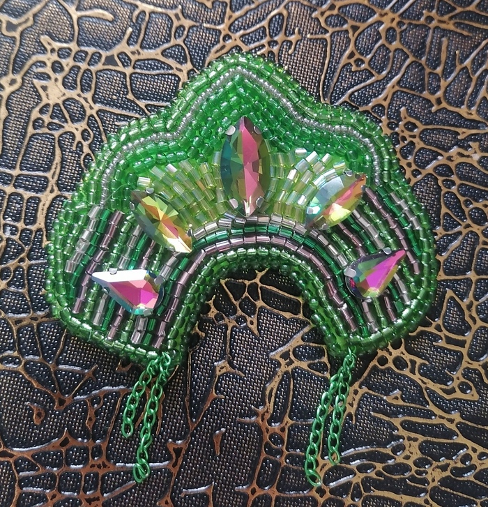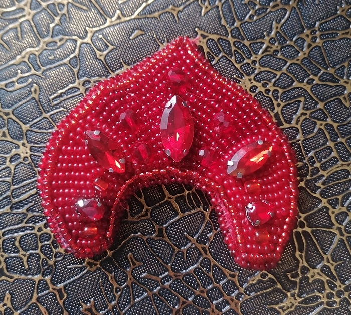 Вдохновлялась уральскими сказами, конкретно "Огневушкой-поскакушкой". Яркие переливы на стразах напоминают о языках огня🔥
