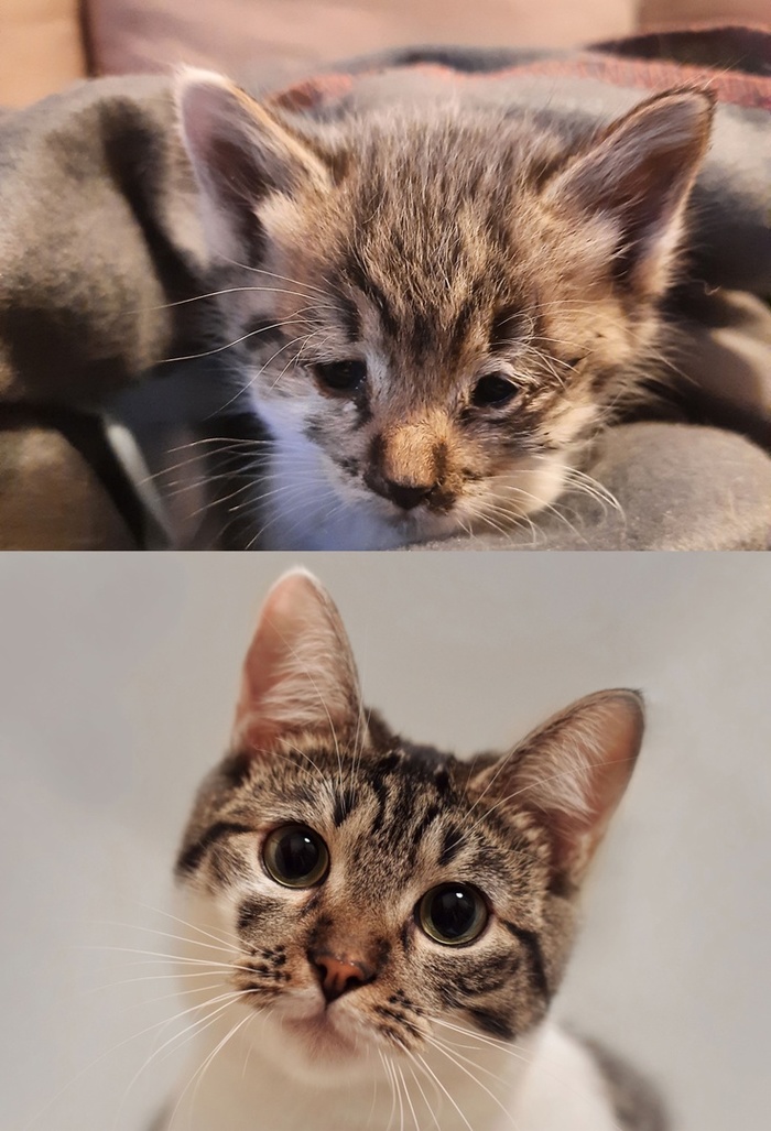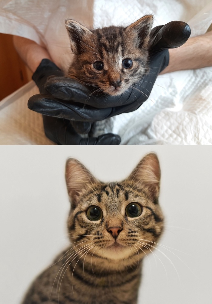 Это Маркоша. Её вместе с сестрами и братом мы с мужем взяли домой на передержку, когда им было всего 3 недели. Первая подборка фотографий каждого этапа взросления здесь Как растут котята: от 3 недель до 4 месяцев