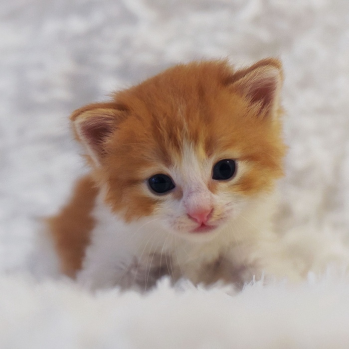 А это Бублик. Фото не передают даже половины его восхитительности - ни внешне, ни в характере. Он очень красивый - крупный, ярко-рыжий, длинношерстный, а про характер у детей такого типажа говорят, что они подарочные: спокойный, очень ласковый, нежный, с удовольствием сидит на руках. В основном переворачивается на спину, перебирает лапками от удовольствия и смотрит на нас, как будто улыбаясь. Самое ближайшее сравнение - малыш Йода (он же Грогу).