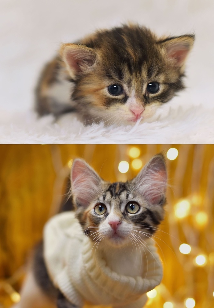 Чуть больше года назад мы с мужем забрали из подвала на передержку 5 двухнедельных котят, про них я писала здесь https://pikabu.ru/series/maryiska_bublik_korzhik_iriska_i_al... Последнюю котейку, Ириску, удалось пристроить только этим летом, так что я решила сделать небольшое видео про ее взросление после того, как она обжилась в новом доме. И показать несколько фото из последней фотосессии, такую красоту прятать нельзя)