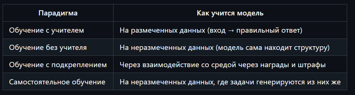 В первую очередь, модели ИИ классифицируются по их парадигмам обучения. Парадигма определяет сильные и слабые стороны модели.