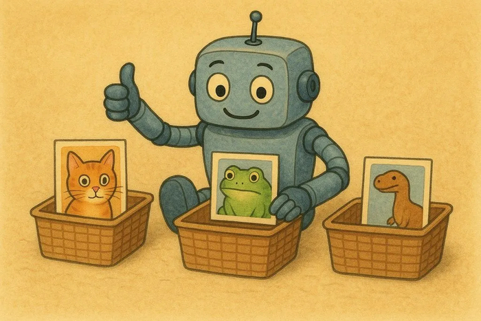 Представьте, что вы показываете модели тысячи изображений — кошек, собак, лягушек и динозавров (предположим, для ясности, что мы каким-то образом получили четкие фотографии вымерших рептилий). Но мы не говорим модели, кто есть кто. На самом деле, модель даже не знает, сколько существует категорий: три? пять? пятьдесят? Она просто ищет визуальные закономерности. В конце концов, она начинает группировать пушистых существ в один кластер, а тех, у кого гладкая кожа, глаза по бокам и зловеще холодный взгляд, — в другой.