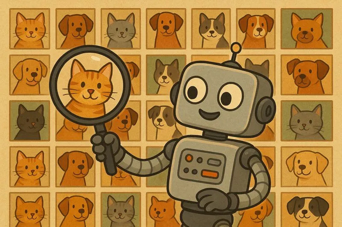 Как обучить модель отличать кошек от собак на фотографиях? Вы показываете ей десятки тысяч изображений — каждое с правильной меткой: «Это кошка» или «Это собака». Модель начинает искать закономерности: «Ага, у кошек есть треугольные уши, а у собак — длинные морды». Она не знает, что такое кошка или собака, но она видит, что некоторые изображения похожи друг на друга, а другие — нет. И с каждым новым примером она становится все лучше в распознавании этих паттернов. После тысяч итераций модель начинает замечать кое-что сама: у кошек треугольные уши, подозрительный взгляд и склонность основательно усаживаться на клавиатуру. Это и есть обучение с учителем — тренировка на размеченных примерах, где «правильный» ответ известен заранее.