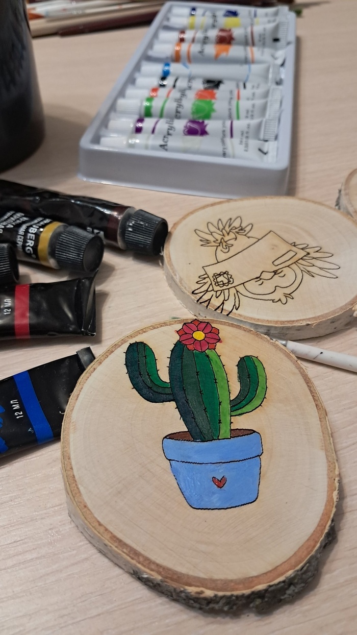 Раскраски, магниты и подставка на спиле березы