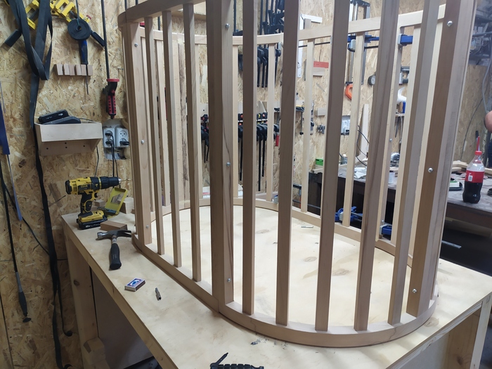 Решил повторить достаточно известную модель кроватки-трансформер. Выполнена в моём любимом цвете из массива бука.