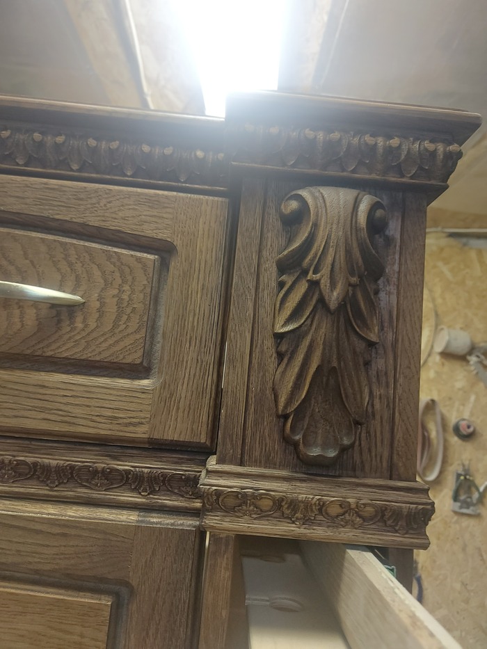 Также декоративные элементы выполнены на ЧПУ. Все элементы приклеены клеем Titlebond d3.