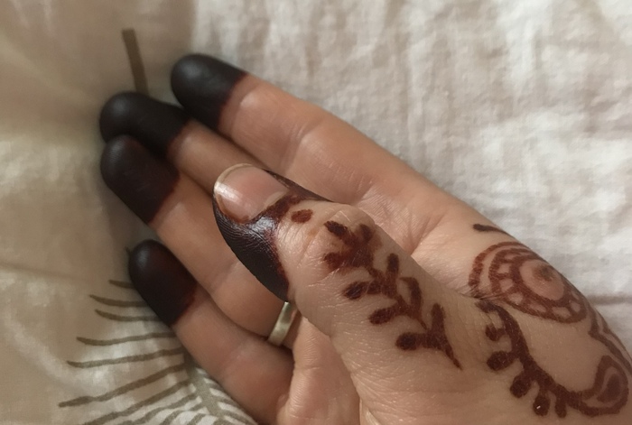 После выбранной вами длительности хождения с хной … короче, когда терпение кончилось и все это уже подбешивает, снимаем пластырь. Отшелушиваем остатки засохшей хны. Можно протереть рисунок при необходимости хорошо смоченной в масле ( хоть подсолнечном!) салфеткой.