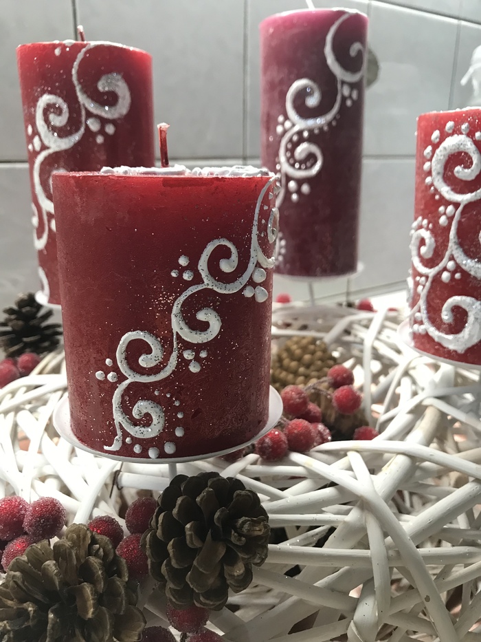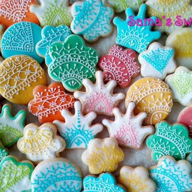 Рисуют такие рисунки ,в основном , конусами - типа кондитерских, только маленьких. Техника в общем такая же, как торт разрисовать глазурью. Только вот «торт» на подносе не покрутить, поверхность у него не ровная и узоры намного, намного филиграннее…))