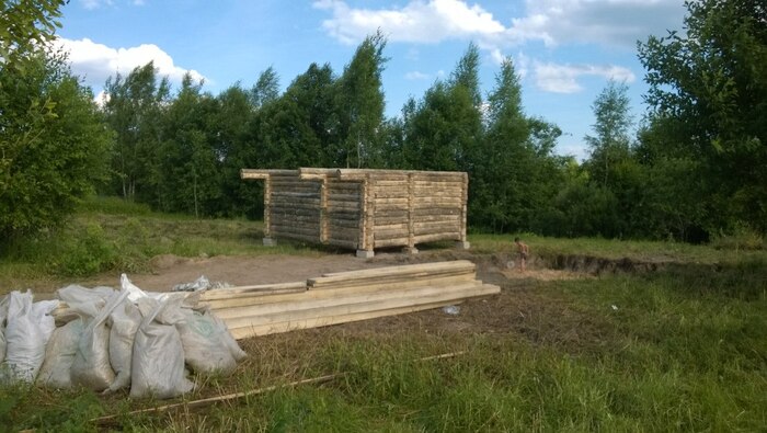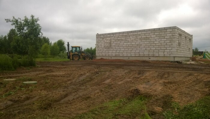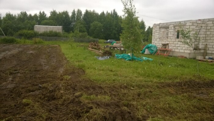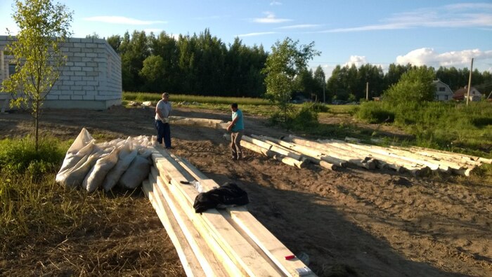 И теперь можно не скакать по фундаменту, а полноценно ХОДИТЬ по полу). Да, знакомьтесь, на фото – мой давний друг и помощник, его зовут Заир, гость из Узбекистана, специально приглашенный на первый этап строительства. А то в одно лицо как-то совсем грустно было....