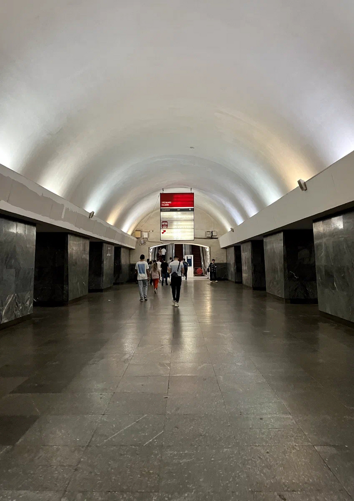Людей, по сравнению с Ташкентом, практически нет. Наверное, только в Нижнем Нижнем людей меньше. А еще чувствуется, что в метро очень влажно и пахнет сыростью.