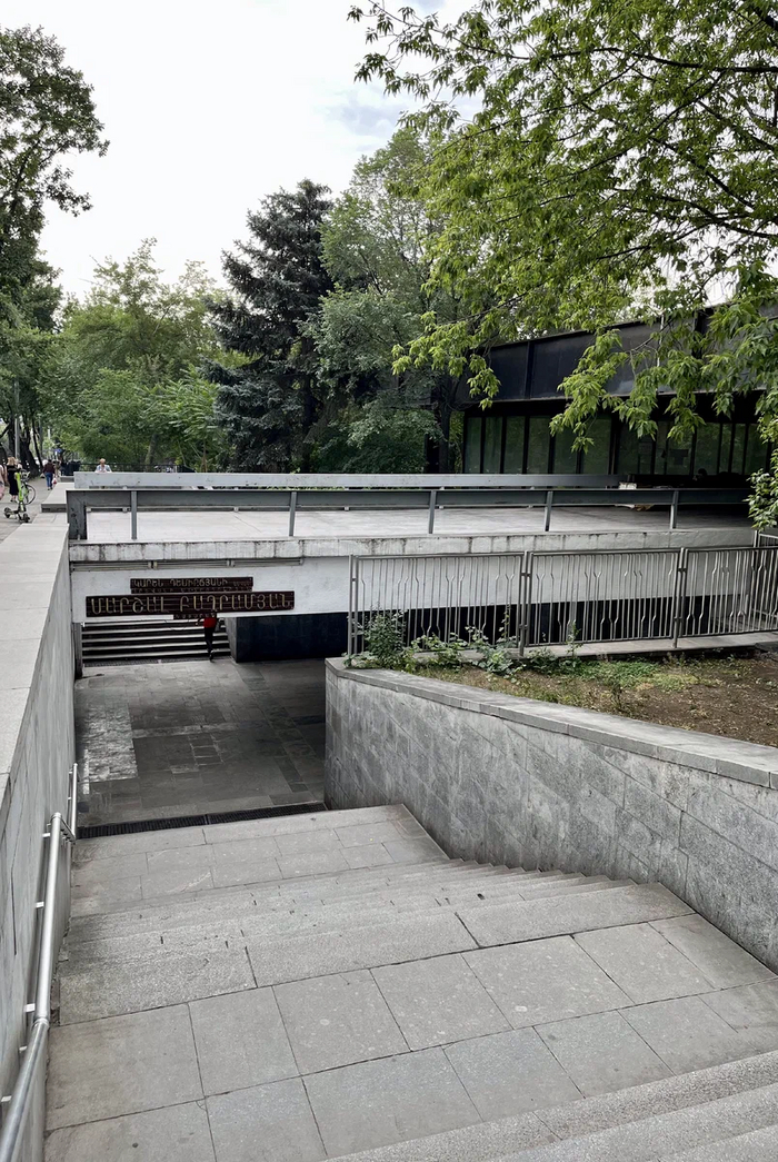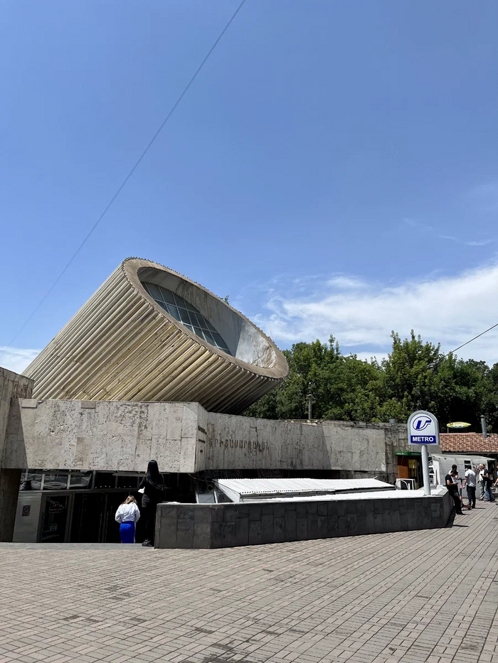 Вход на станцию «Абая». На фоне «казахских хрущевок» выглядит душевно: