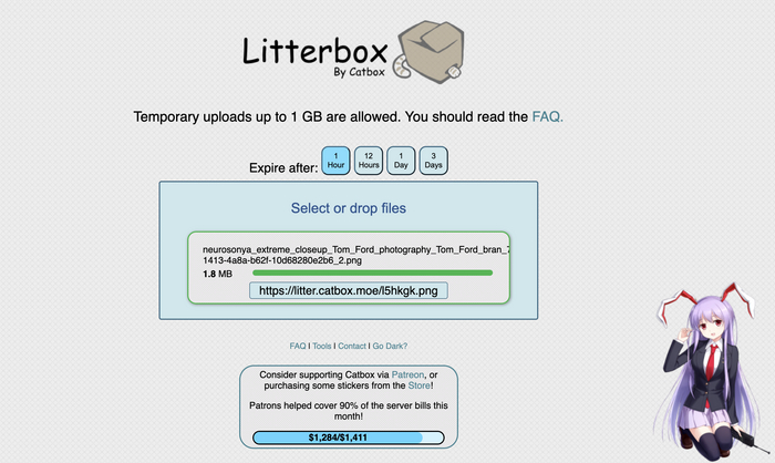 3. Дальше я столкнулась с проблемой загрузки изображения. Так как сервис бесплатный, у них нет возможности загрузки изображений, сервис принимает только ссылки. Мою ссылку из Дискорда (напомню, я сгенерировала изображение в Midjourney) не принял. Но любезно предложил альтернативы - litterbox и tutorial