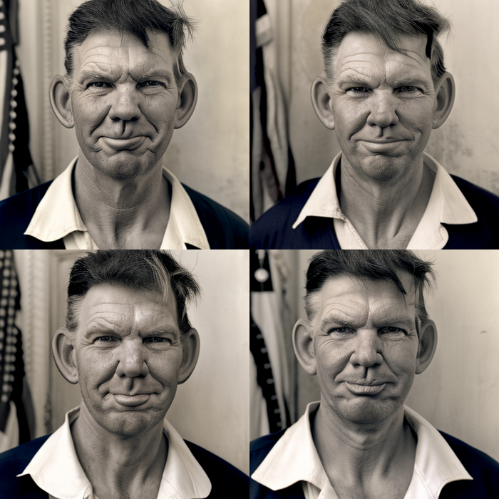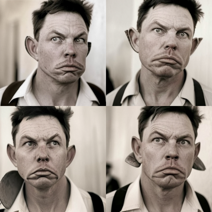 Скрестил лицо Глада Валакаса одного из умственно отсталых близнецов с лицами известных политиков, бизнесменов и актёров. Лица получились не обремененные интеллектом и достаточно узнаваемые, так что подписывать кто есть кто не буду.