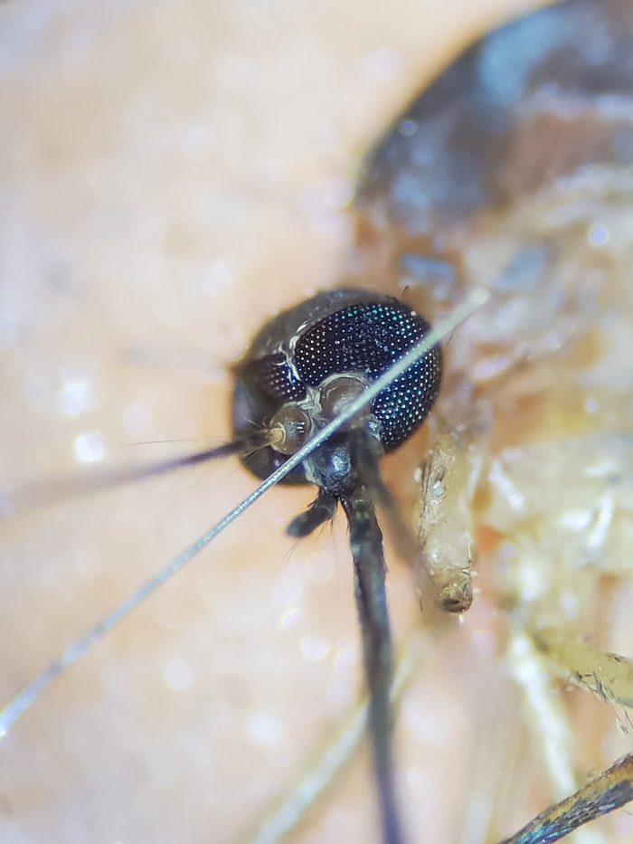 Для данных работ использовалась проволока диаметром 0.02мм и 0.008мм. Вот масштаб рядом с покерфейсом мелкого комара: