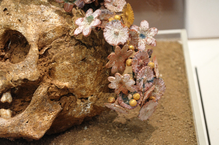 Глаза были просверлены в виде небольшого плоского углубления, чтобы вставить вкладку из кости которая была утрачена.