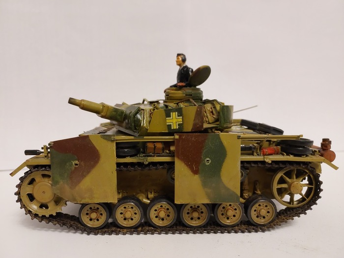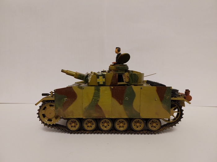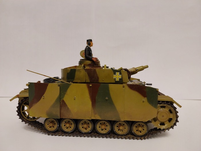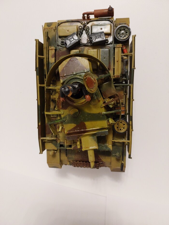 Добрый день. Так получилось, что на день рождения коллеги подарили сертификат в магазин моделей. Поразмышляв над выбором, решил взять набор от TAKOM. Отзывы по набору были отличные, все хвалили. И, надо признать, не врали. Не смотря на то, что модель из серии BLITZ, т.е. упрощенная быстрая сборка, деталей много, вся упрощенка в том, что ванна корпуса дана одной деталью. Бортовые экраны - фототравление из коробки. При этом из набора можно собрать как модель N, с 75 мм короткоствольной пушкой, так и вариант с 50 мм длинноствольной. Решил делать N, как более редкую. Из доработок - добавил проводку к фарам, пару канистр, тамиевского танкиста. Часть люков сделал открытыми. В окраске ориентировался на боксарт и вариант камуфляжа Италия 45 года. Но по факту получилось сильно по мотивам. Не очень плотно уложил пластилин при нанесении камуфляжа, краска подтекла. Попытки выравнивая привели к смещению камуфляжных пятен и сильному искажению результата. Окраска Pasific Aero Dunkgelb, Olivgrun, Shokobraun. Также простой Pacific Старые шины, Ржавые гусеницы. Ну и немного МАКР. На гусеницы смешивал черный и коричневый, потом выделял полированную часть маркером хром от Jim Scale. Смывка от ZIp, светло-коричневая. Лак глянцевый ZIP. Матовый перед масляными точками -ZIP. Матовый финальный - Jim Scale. Вот с лаками проблема возникала. Zip матовый при высыхании дал белый налет. А матовый Jim Scale показался слишком жидким. Также немного эффектов грязи и ржавчины от ZIP. Сборка модели понравилась, хотя порой членение деталей местами, на мой взгляд, излишне. Стыковка отличная. Окраска пошла сильно не по плану, но все же опыт. Модель в жизни не так сильно блестит, как на фото.