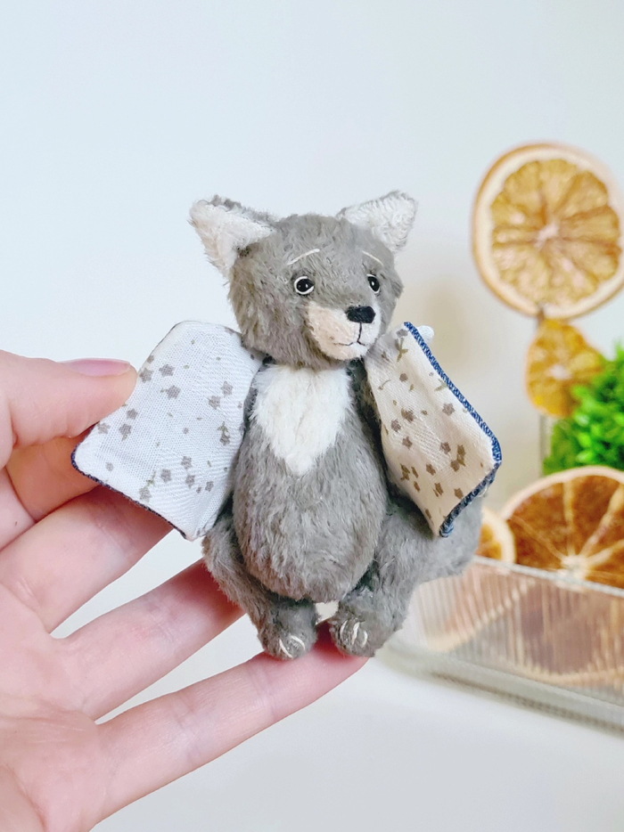 Все мои игрушки ростом около 9см, вес будет около 26г (удобно носить в кармане), набиты кедровыми и можжевеловыми опилками (для запаха), в пузике будет дополнительно стеклянный гранулят для утяжеления, ручки, ножки и голова крутятся.