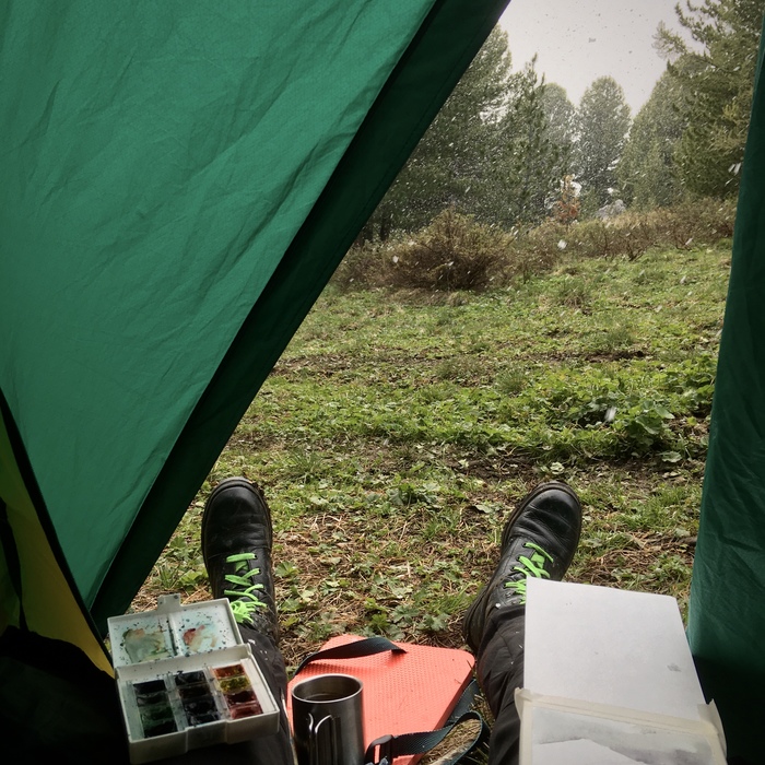 Знаете что это за палатка? Это ого-го! В ней печка, которую лыжники - походники тоже тащат с собой, как и палатку, каны, снарягу, спальники, еду...