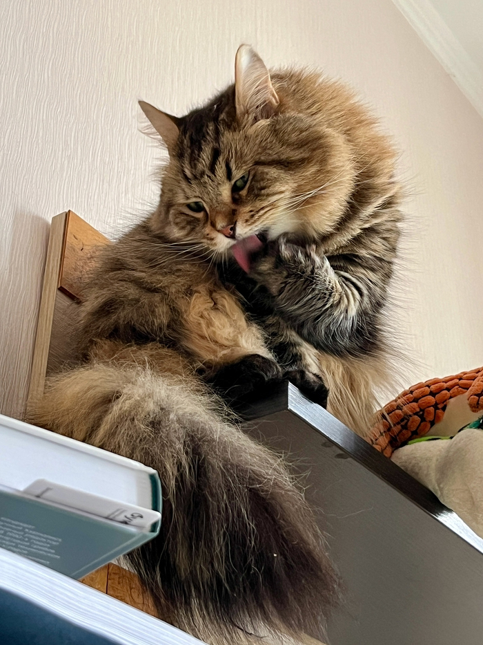Длиннокот Грей на столько длинный, что помещается в кадр только наискосок