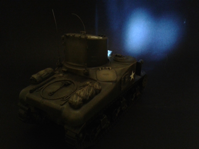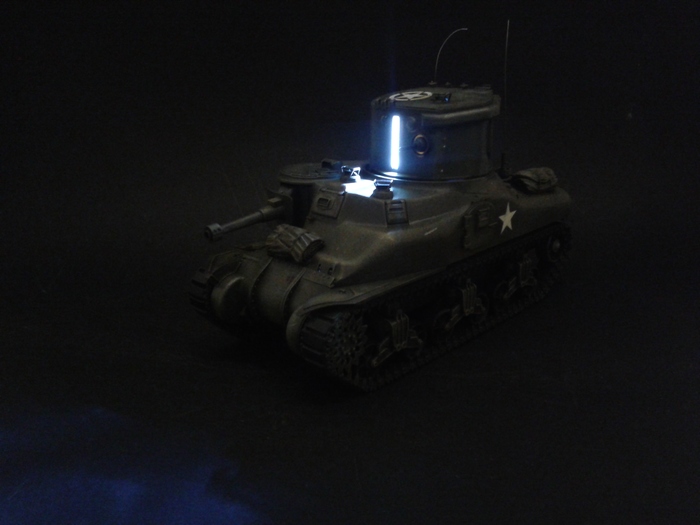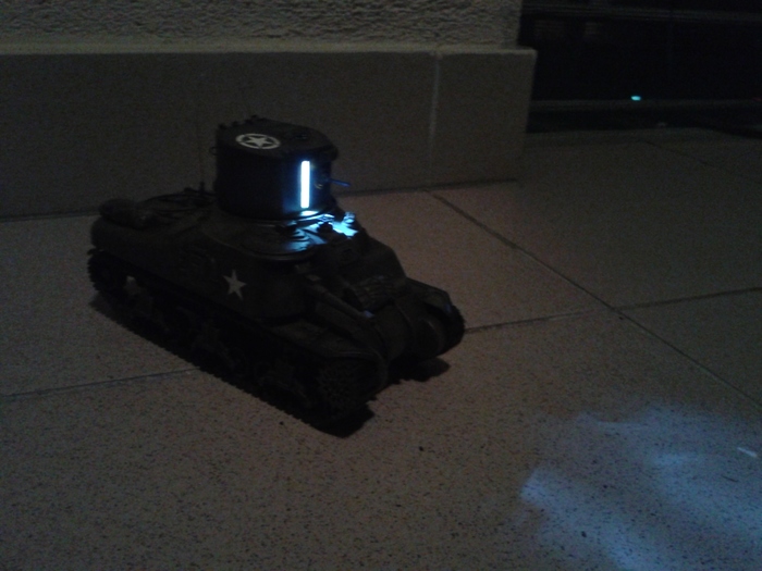 Раскурочил китайский карманный фонарик и оснастил танк настоящим прожектором.На фото то что пока есть.