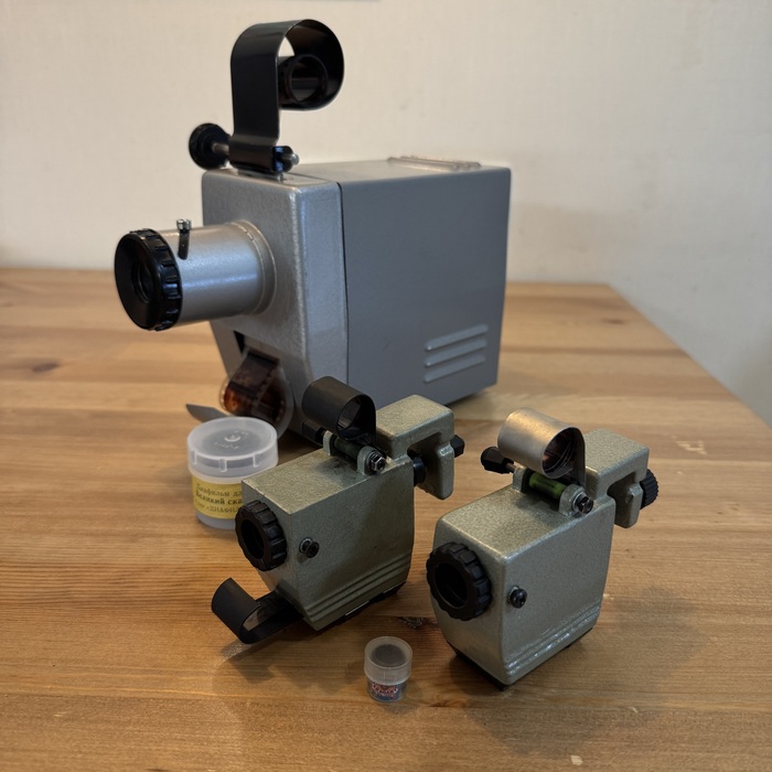 В детстве каждое лето меня отвозили в деревню. Там по вечерам после работ на огороде мы с сестрами занавешивали окна мазанки одеялами для кромешной тьмы и начинались сеансы диапоказа. Как сейчас помню - все пленки хранились в баночках, но были перепутаны… Иногда диафильмы читал дедушка, иногда папа… а иногда мы сами, тем самым обучаясь скорочтению. Вспоминаю и так хорошо на душе становится! Треск трансформатора, летающая перед объективом пыль, и запах плавящейся пленки из нитрата целлюлозы… Коснувшись корпуса проектора через полчаса его работы - ты навсегда запоминал, что так делать не стоит.