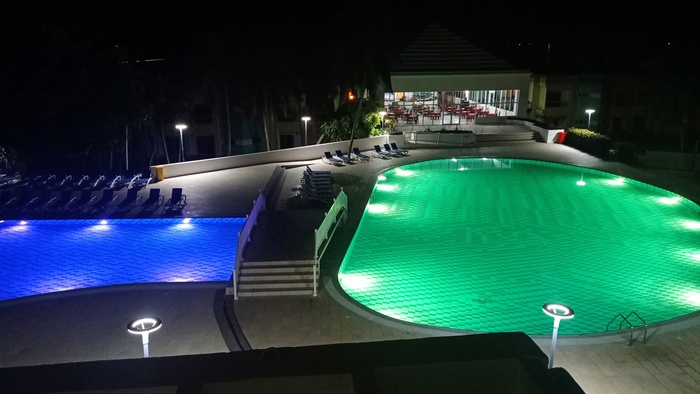 Бассейны работали только мелкие. Глубокие были пусты и вокруг них не было ограды, а вечером после коктейлей ходили мимо них на шоу, было ощущение, что можно навернуться.