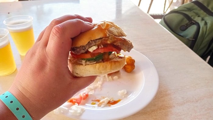 Бар-пиццерия пиццу не предлагал.) Снэки были ограничены сендвичем или бургером с малюсенькой начинкой. Также и на пляжном баре.