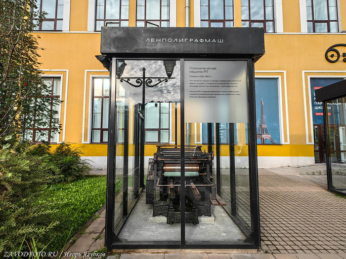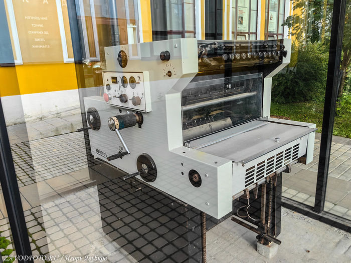 А это уже офсетная печатная машина НевоПринт 350м (такие производили в 1984-1995 гг). НевоПРИНТ 350 М стала последней офсетной листовой машиной СССР и сейчас сохраняется в стеклянном боксе на территории бывшего завода. Машина была предназначена для печати черно-белой и полноцветной листовой продукции: бланков, буклетов, книг, журналов, обложек со скоростью до 7500 листов в час при формате листов 360*500 мм.