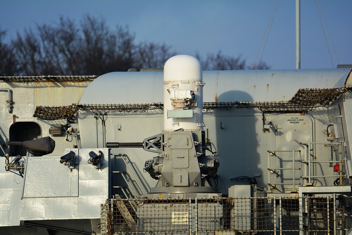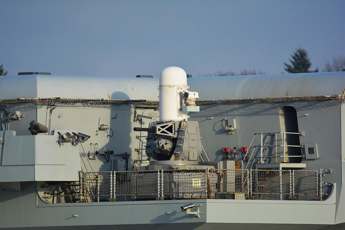 В первоначальном проекте не предусматривается установка вооружения, в том числе средств ПВО самообороны, однако зарезервировано место под две 16-контейнерные установки вертикального пуска зенитных ракет «Астер». На сегодняшней день оборонительное вооружение представлено тремя 20-мм шестиствольными скорострельными артиллерийскими установками ближней обороны Phalanx CIWS, а также 4 современных 30-мм автомата DS30M Mk2.