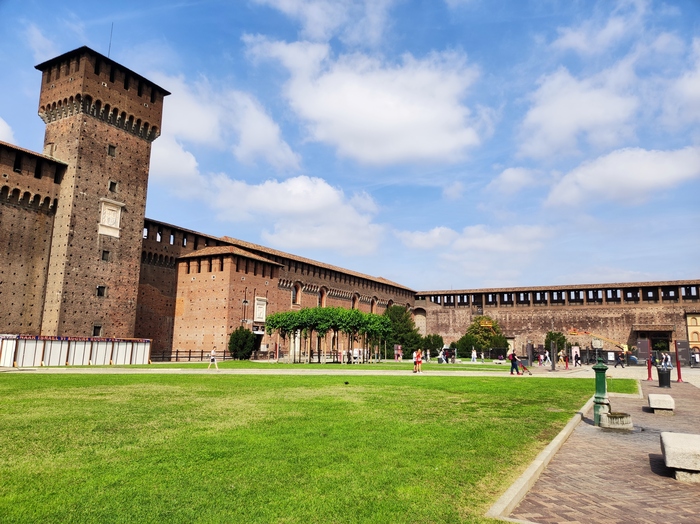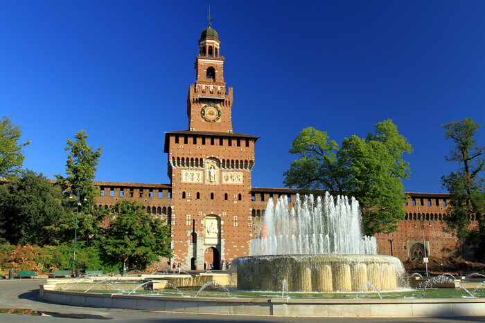 Значительно трансформированный и видоизмененный на протяжении веков, Замок Сфорцеско в период с шестнадцатого по семнадцатый века был одной из главных военных цитаделей Европы ; восстановленный в историческом стиле Лукой Бельтрами между 1890 и 1905 годами, сейчас он является домом для культурных учреждений и важных музеев . Это один из крупнейших замков Европы, а также один из главных символов Милана и его истории .