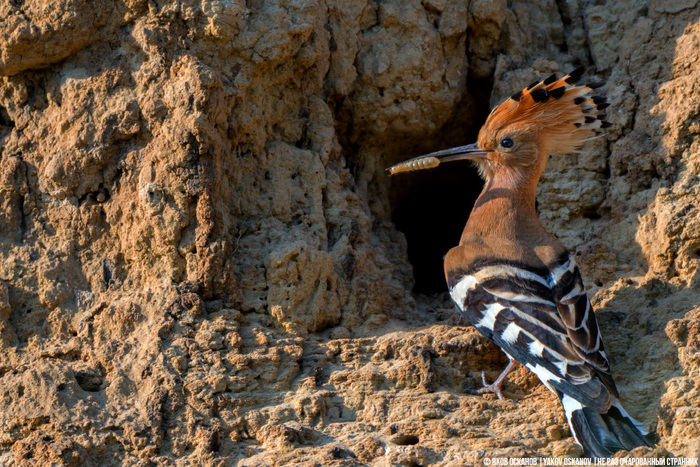 Нам повезло. Ну, как повезло? Пришлось две недели по выходным объездить не одну сотню километров и обойти не один десяток обрывов, чтобы найти подходящую для съёмки нору.