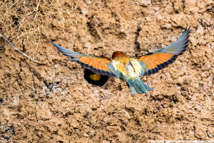 При этом, сидя в шалаше вы не можете оглядываться вокруг и контролировать подлёт. Поэтому птицу вы видите не более двух секунд за раз: 1 секунду она влетает в нору и ещё 1 секунду вылетает. Всё. Вам нужно сидеть и часами пялится в глиняную стенку обрыва, в готовности мгновенно нажать спуск. И это не преувеличение.