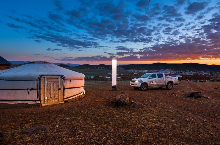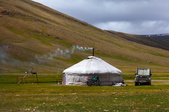 Самая обычная история - солнечная панель и спутниковая тарелка у каждой юрты.