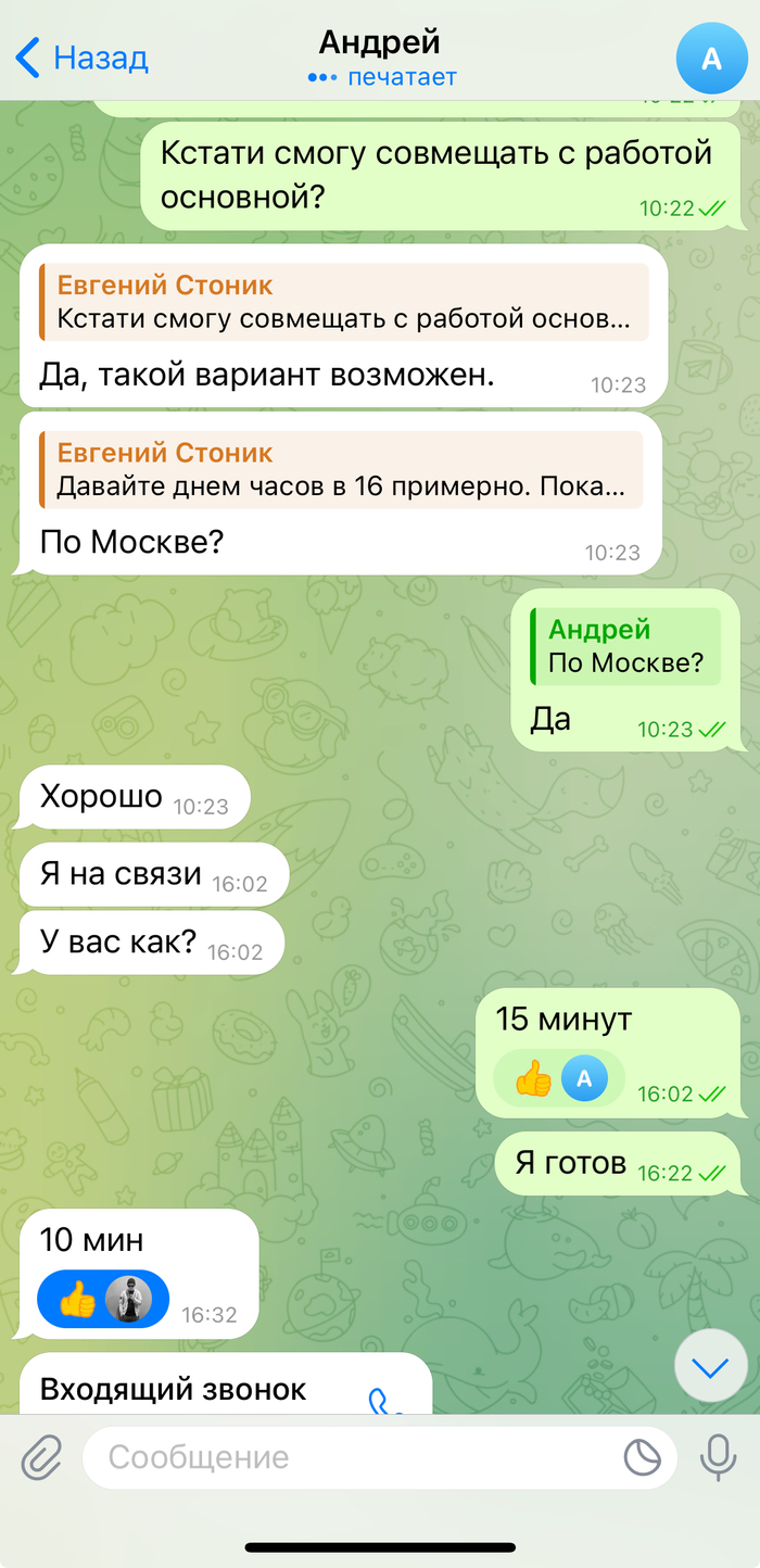 Откликаемся на объявление, выходим на Евгения. Созваниваемся