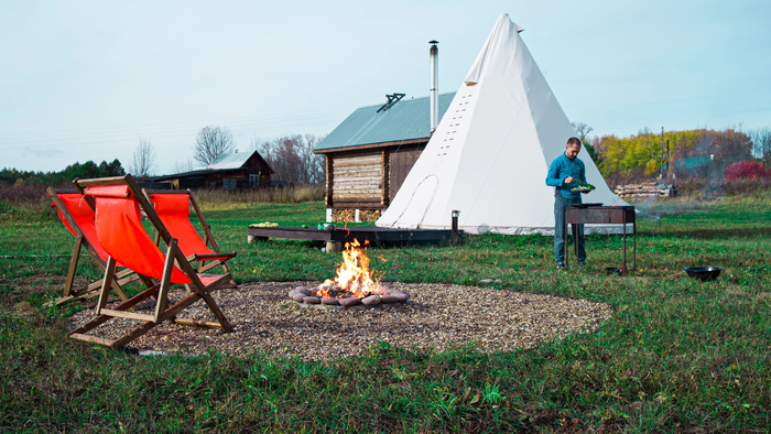 Хотелось чего то интересного, необычного и я вспомнил увлечение детства, как бы банально не звучало - игры в индейцев. Ну насмотрелся фильмов с Гойко Митичем, каюсь. Я решил поставить типи, шатер внешне напоминающий жилище индейцев. Кто то скажет, что обычная палатка и наверное будет прав. Но для меня это была настоящая типи!!