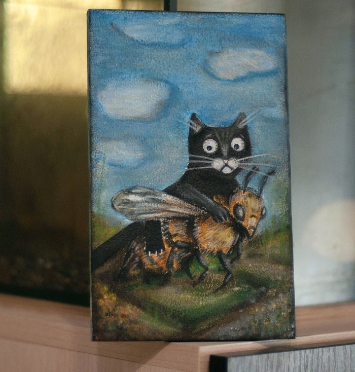 А есть особи пьющие и склонные к всяческим авантюрам, вроде полета на пчеле. В общем, нескучные кошачьи морды.