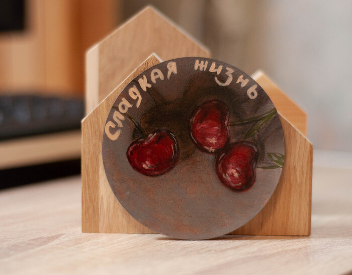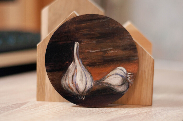 В качестве основы артборд МДФ и грунт. Выполнена работа в смешанной технике: акрил и художественная пастель. Покрытие глянцевый художественный лак. Размер: 7.5×13.5