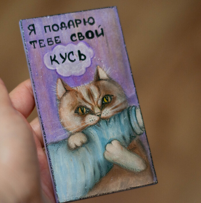 Моя новая работа, и новый магнитик "Кусь". Этот легендарный кусь, знаком практически всем кошатникам.