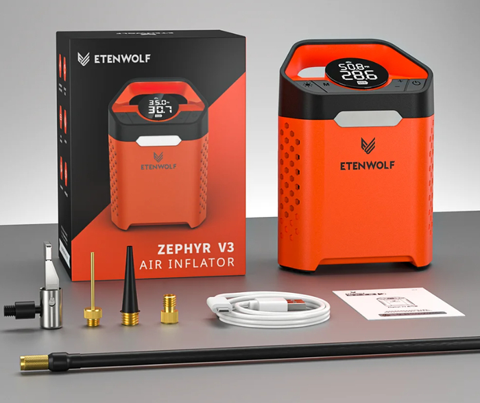 Автомобильный компрессор ETENWOLF V3 создан для тех, кто ценит надёжность и мощность. Он способен накачивать шины до давления 160 psi, что подходит для авто, мотоциклов и велосипедов. Встроенный аккумулятор 7800 мАч обеспечивает продолжительную работу без подзарядки.
