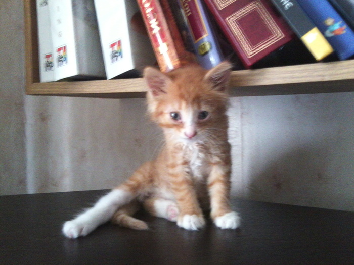 Купила смесь детскую и шприц, с горем пополам покормила. Зверь успокоился и уже не рычал, едва завидев меня. Чуть попозже сбегала с ним в ветеринарку, - благо, она была в шаговой доступности от моей работы. Там мне выписали кучу лекарств от инфекции, следы которой были у него на мордочке, и дали какое-то жуткое средство от блох, - потому что обычным шампунем такое количество не изничтожить.